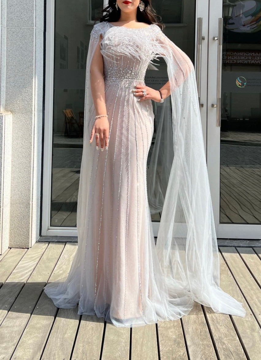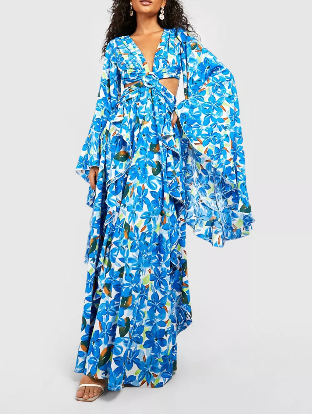 Feather Bodice Flowy Sleeves Maxi (L)