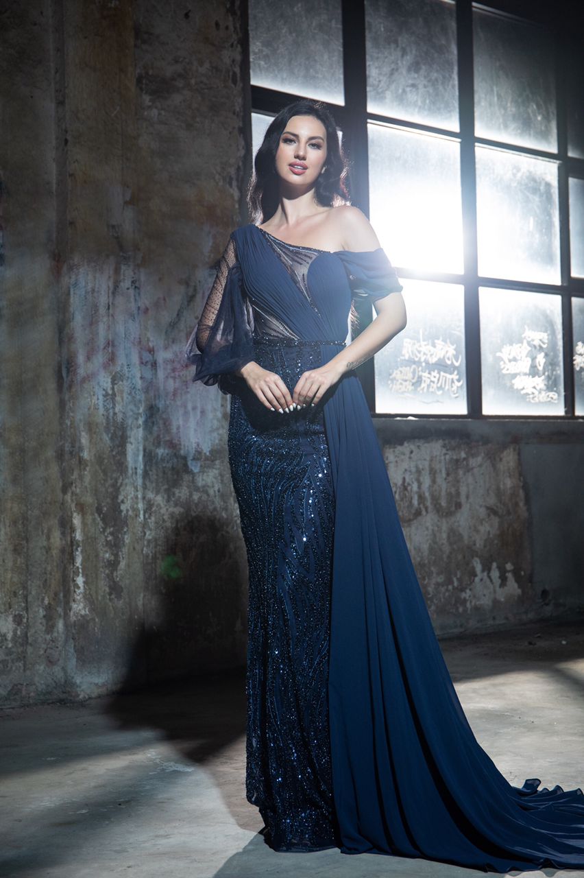 Feather Fancy Dark Blue Gown (XXL)