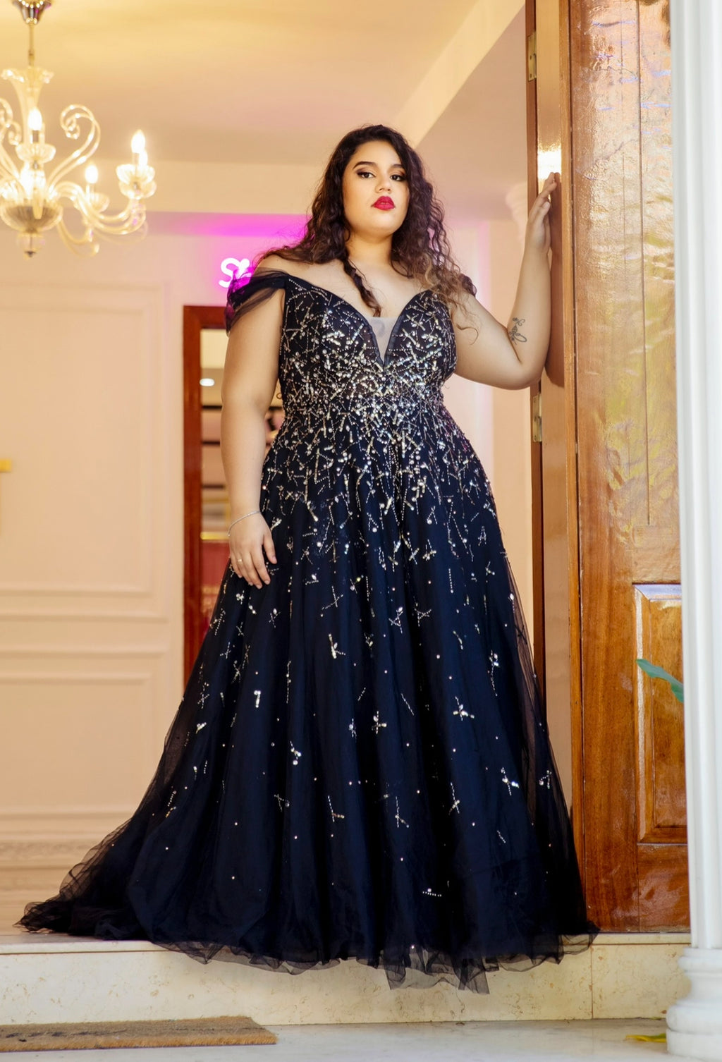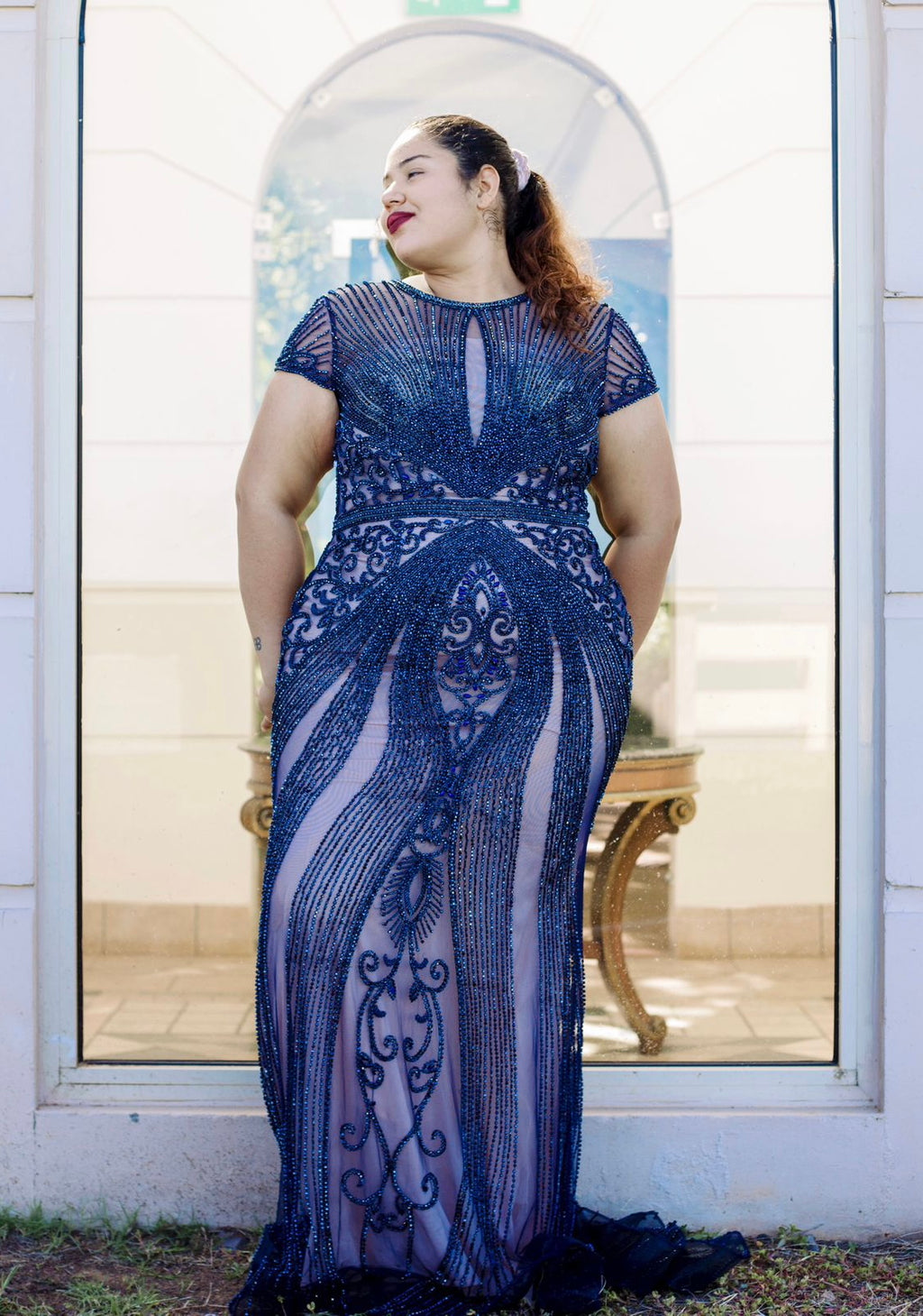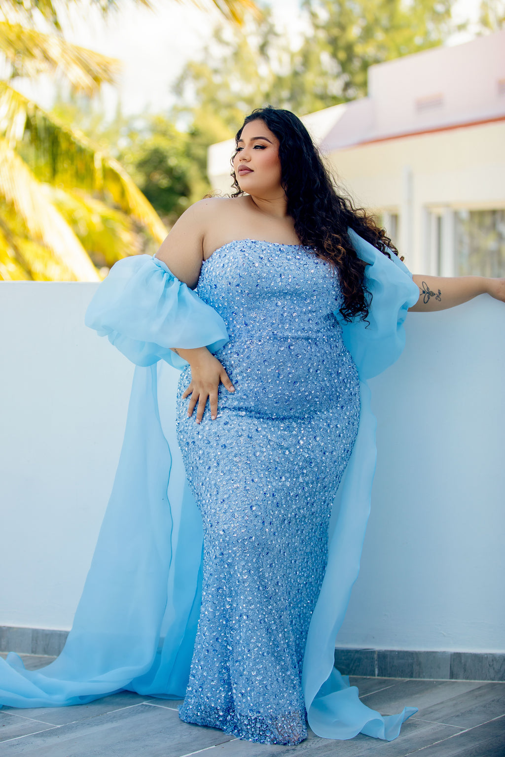 Plus Blue Full Sparkle Gown with Cape (XXL)