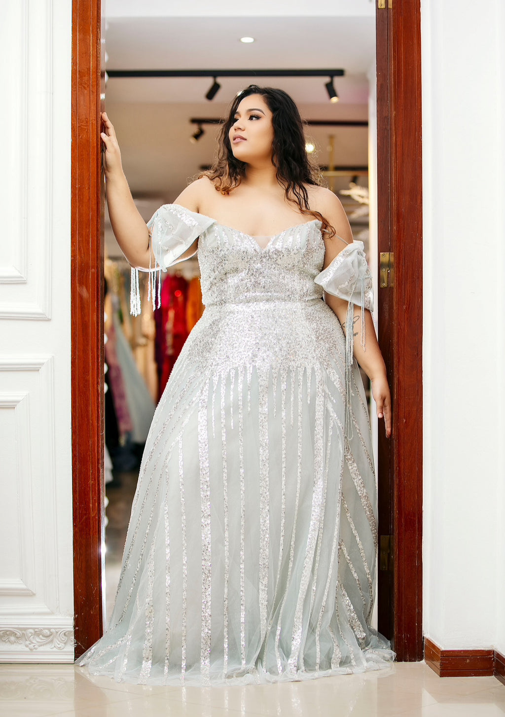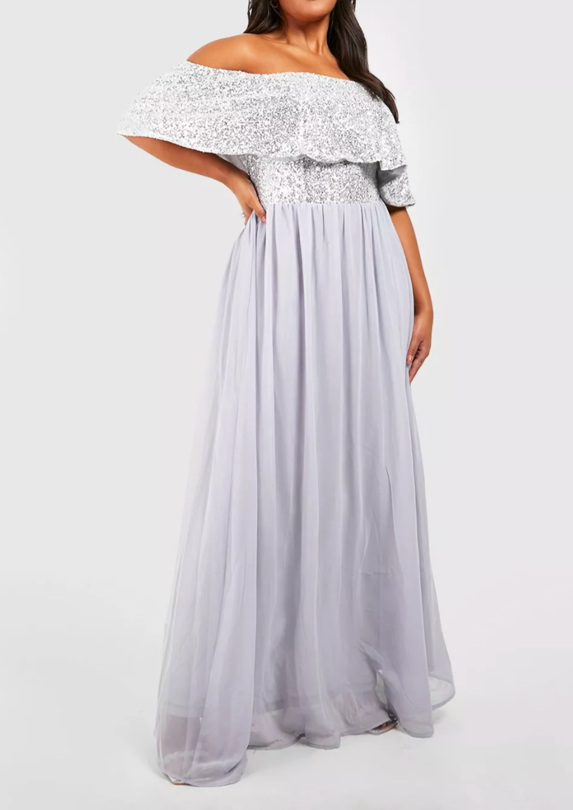 Plus Silver Off Shoulder Glitter Maxi (XXXL)