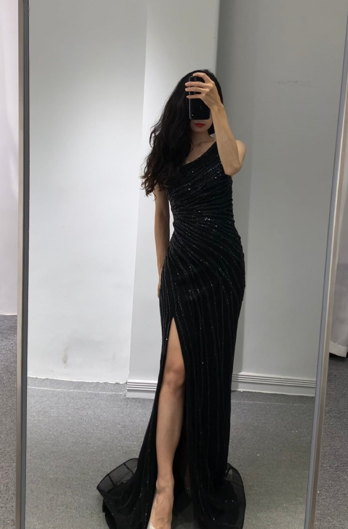 Black One Shoulder Evening Dress (M)