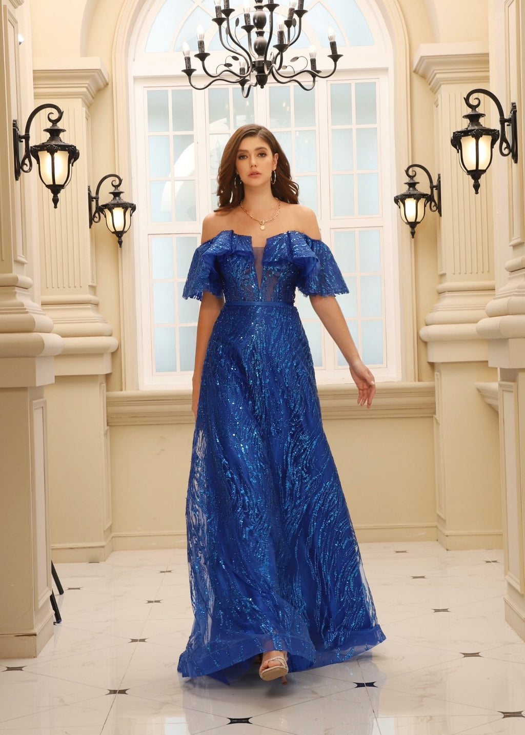 Royal Blue Off Shoulder Sparkle Gown (S)