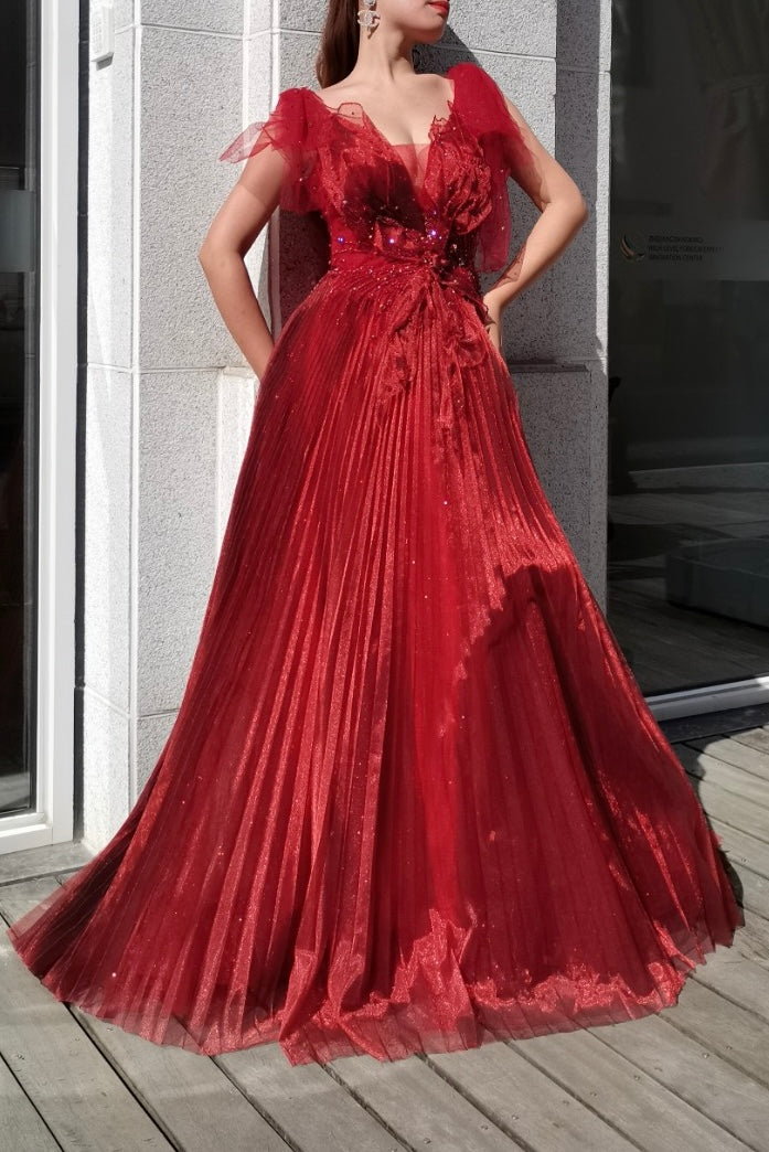 Pleated Red Chiffon Gown (S)