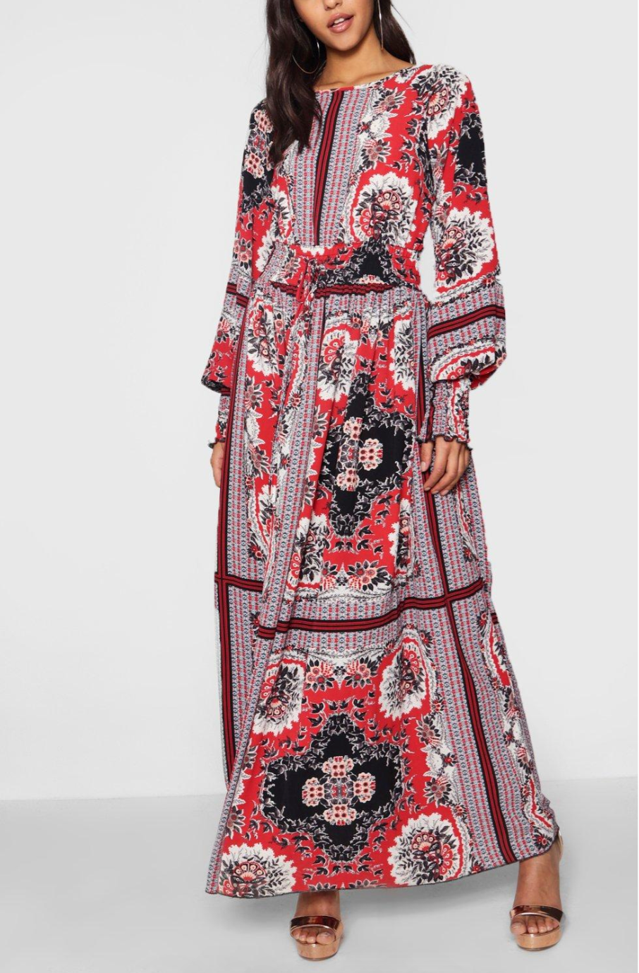 Printed Balloon Sleeve Maxi Red (L)