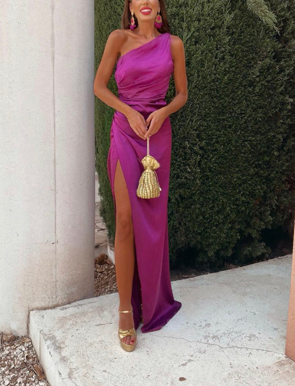 Vestido One Shoulder Puff Sleeve Pink (M)