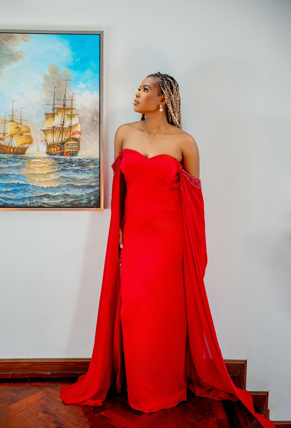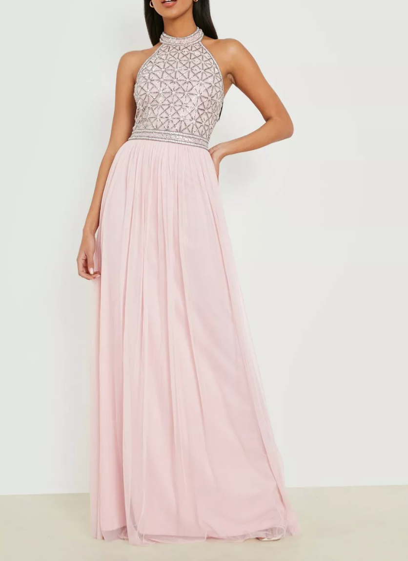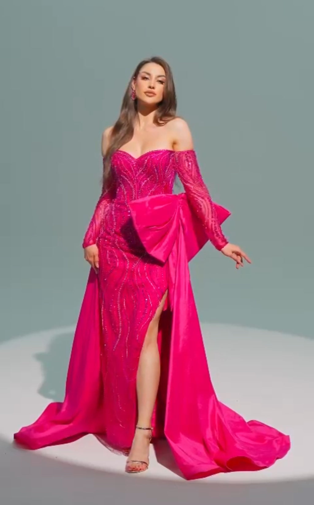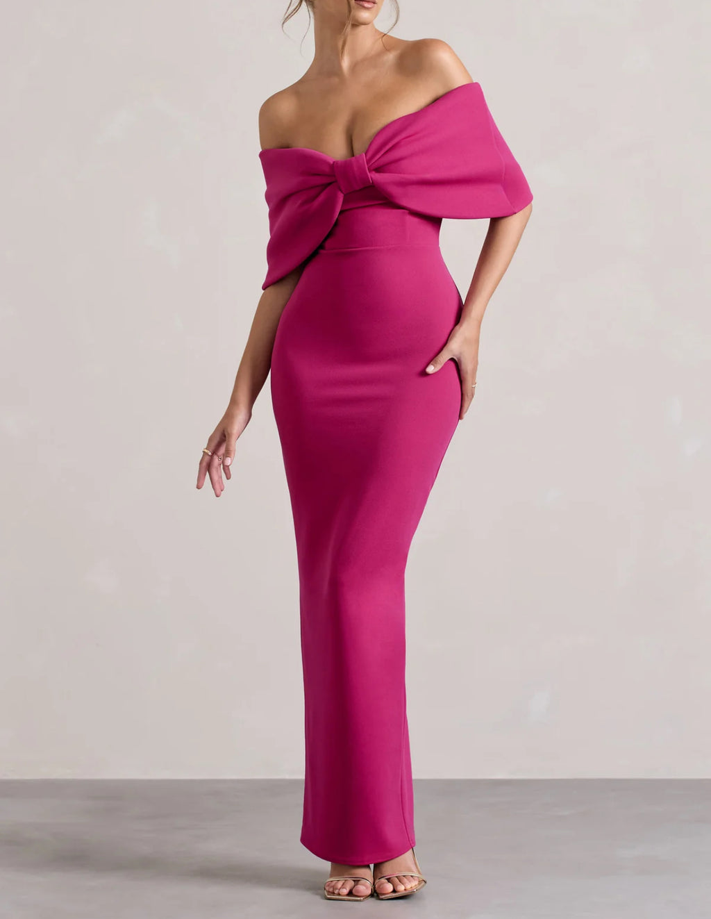 Hot Pink Off Shoulder Bow Maxi (XS)